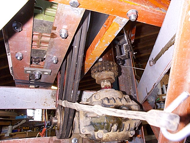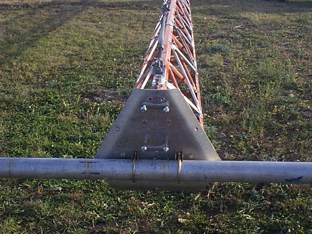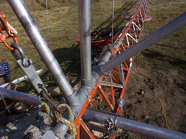 The mast was changed to a more conventional system - a 10 cm (4") pipe with 1.2 Cm (.5 inch) wall supported by 2 bearings and hubs (surplus jet aircraft wheels).